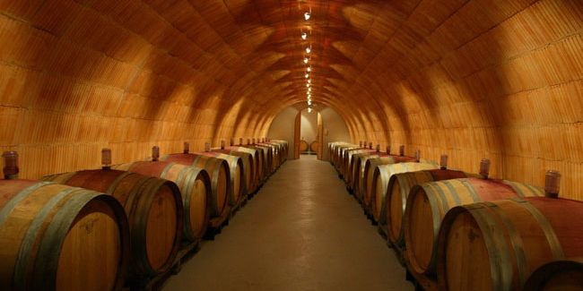 Nicolas Bonnet, Winzer der Domaine de la Comtesse Eldegarde im schweizerischen Satigny, Kanton Genf, entschied sich 2003 diesen ZiegelGewölbekeller zur Barriquelagerung einzubauen. Die Beleuchtung mit Spots wirkt schlicht zurückhaltend und doch schön akzentuiert.
