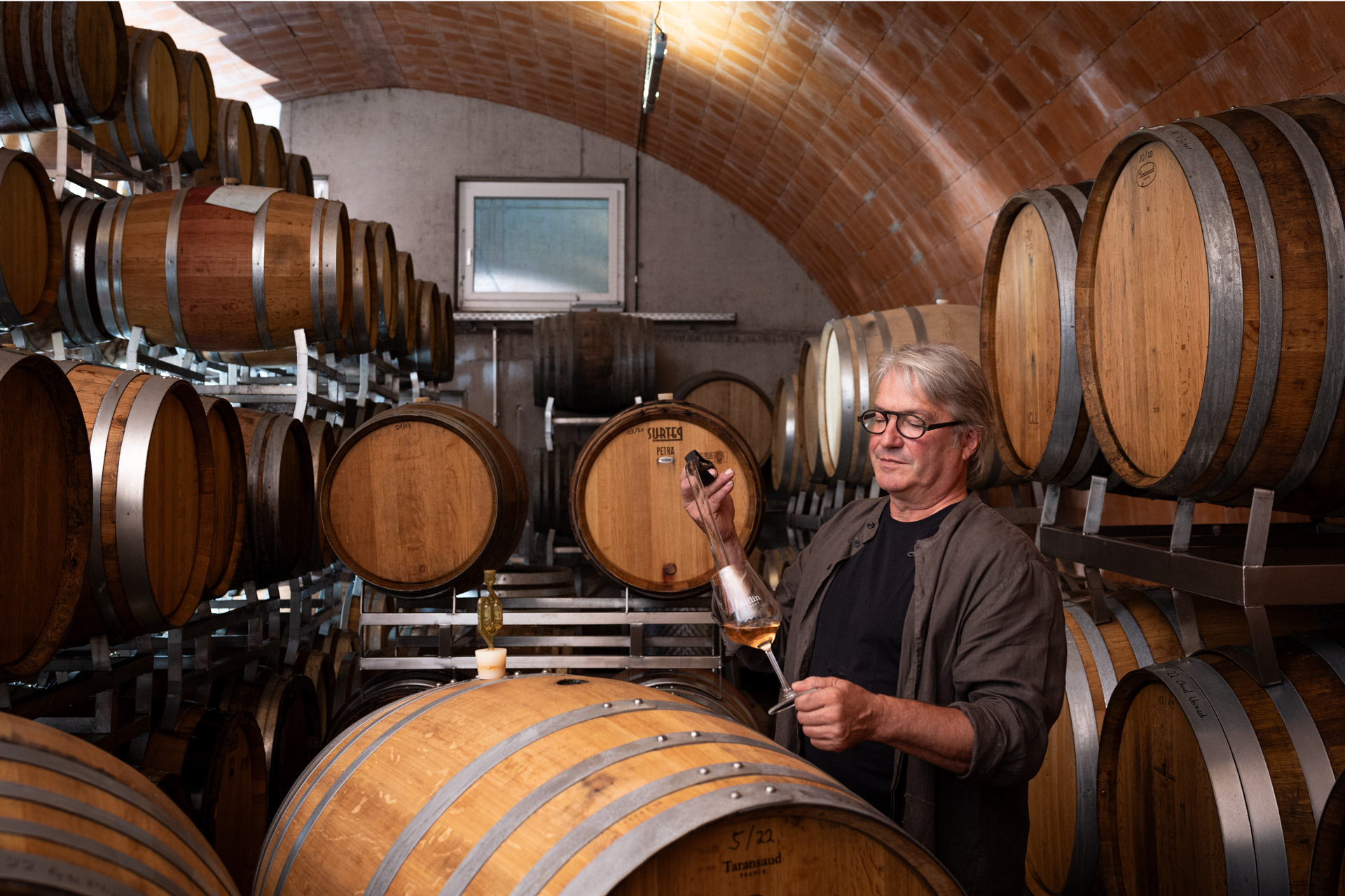 Bereits einige Jahrgänge reifen inzwischen in den zwei neuen Ziegelgewölben, eines für die Weinreifung im Edelstahltank, eines für die Weinreifung im Holzfass und Barrique. Damit ist ein lange gehegter Traum von Matthias Höfflin erfüllt, die Weine bis zur Abfüllung und darüber hinaus konsequent ökologisch im erdgekühlten Naturklima des Ziegelgewölbes zu reifen und zu lagern. Die Weine werden zur höchst möglichen Schonung der Aromen teils unfiltriert abgefüllt, die Tendenz geht zu längerer Reifung im Holz.