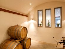 Wir bauten den Barriquekeller mit Kappengewölbe, der nicht nur für den Weinausbau dient, sondern auch Attraktion und optisches Bindeglied zwischen Restaurant und Kellerei darstellt. Fenster ermöglichen den neugierigen Einblick.
