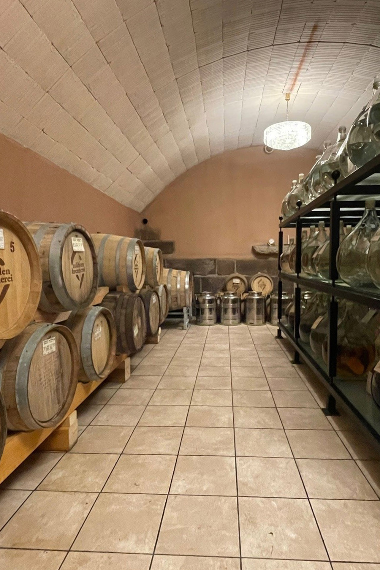 In diesem Zug wurde in 2013 auch der Gewölbekeller erbaut, er ist also bereits seit über 10 Jahren als Reifekeller für die Edelbrände fester Bestandteil der Edeldestille.