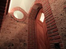 Eine Besonderheit ist das gotische Gewölbe über dem Podest mit Übergang in die gemauerte Türleibung.