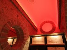 Downlights deckenbündig im Gewölbeaufsatz über den Weinregalen